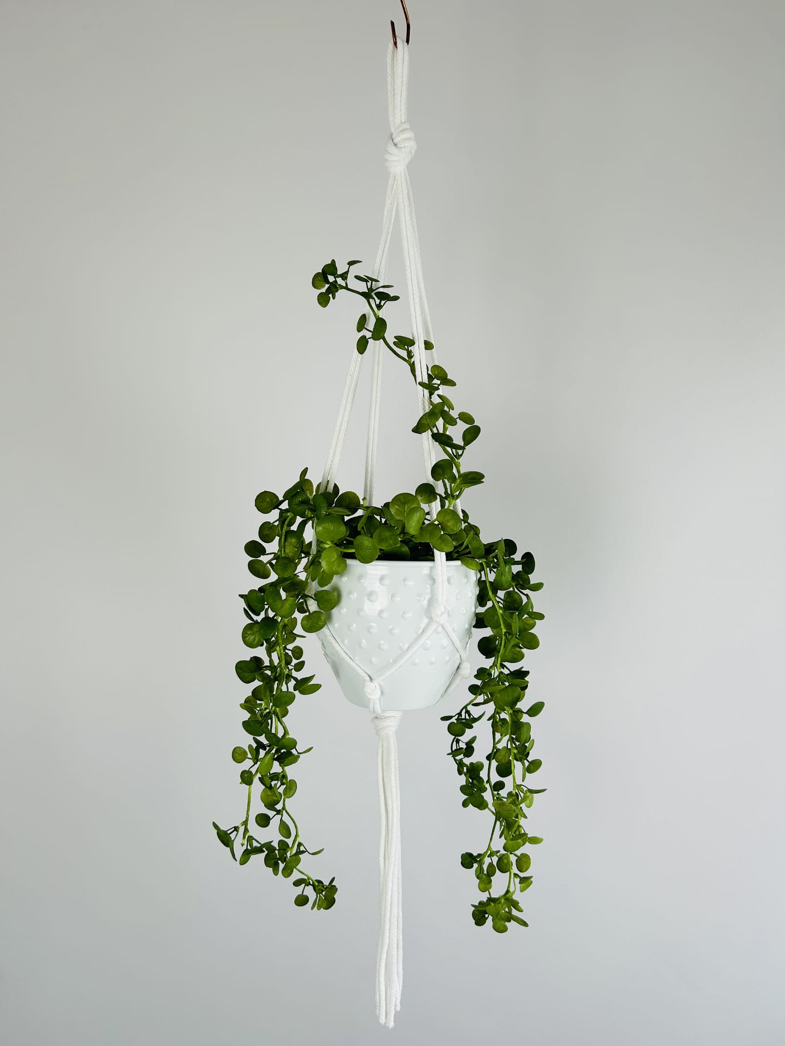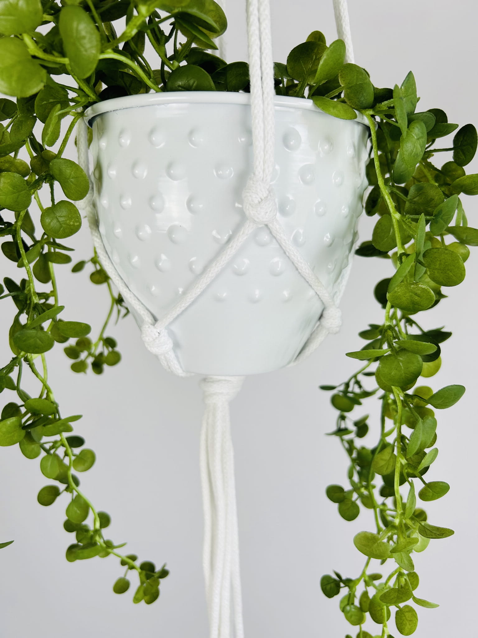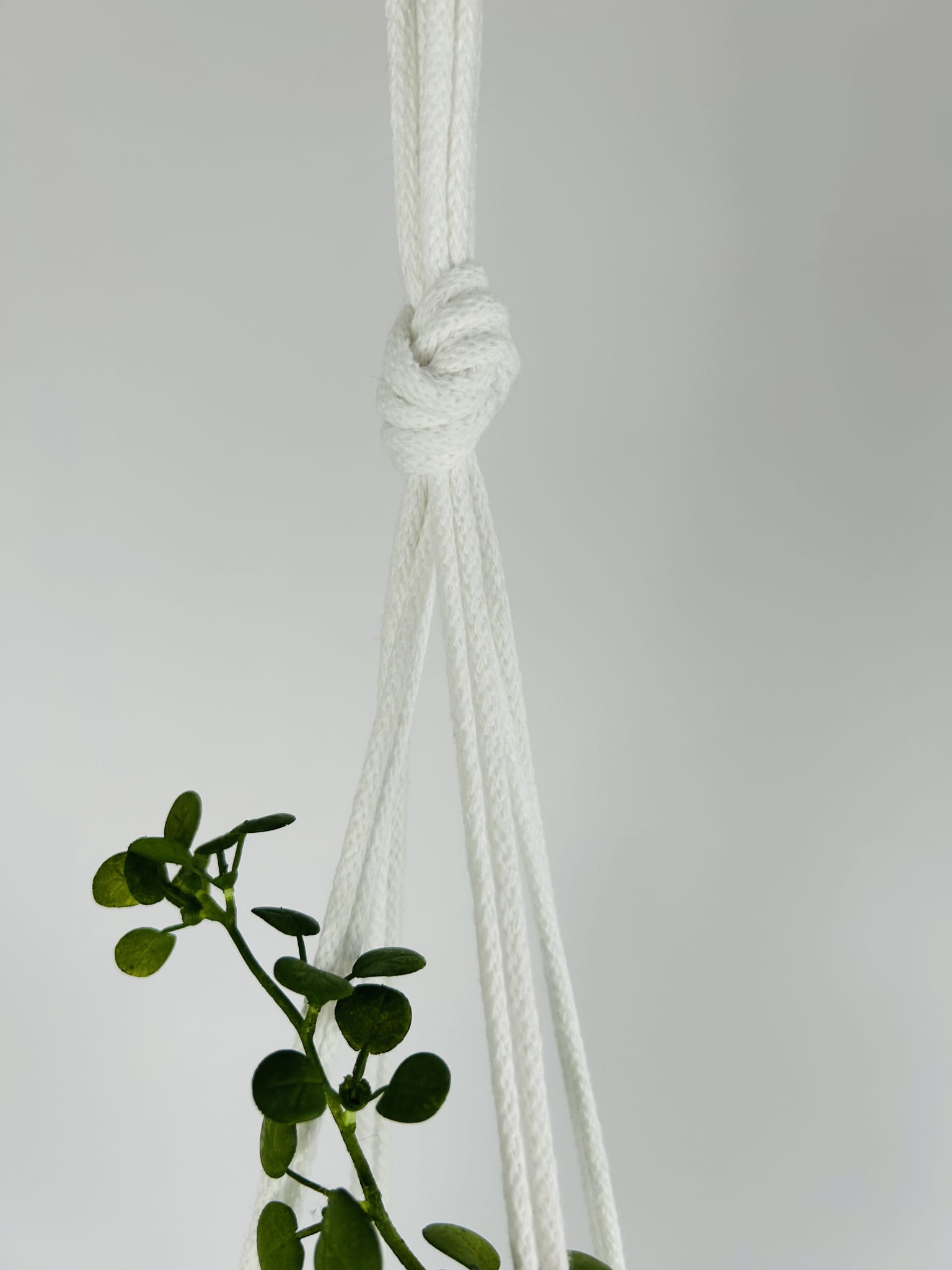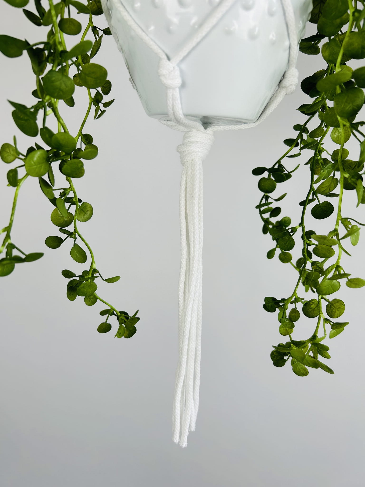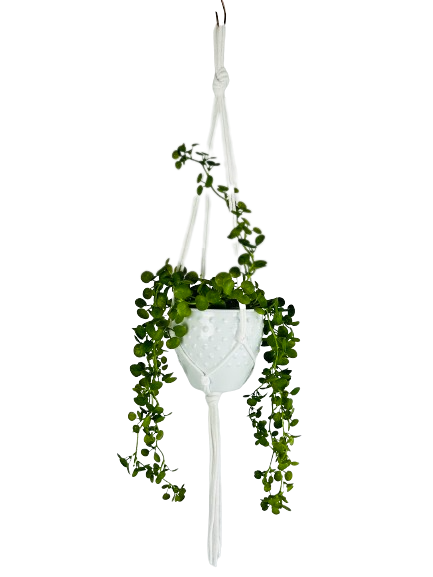 Kwietnik wiszący makrama. Wykonany ręcznie ze sznurka bawełnianego 5mm w kolorze białym.