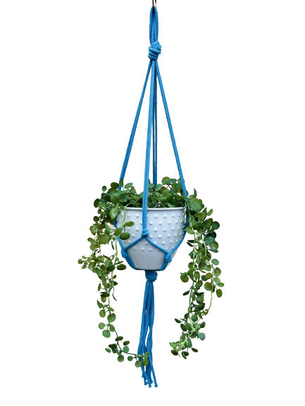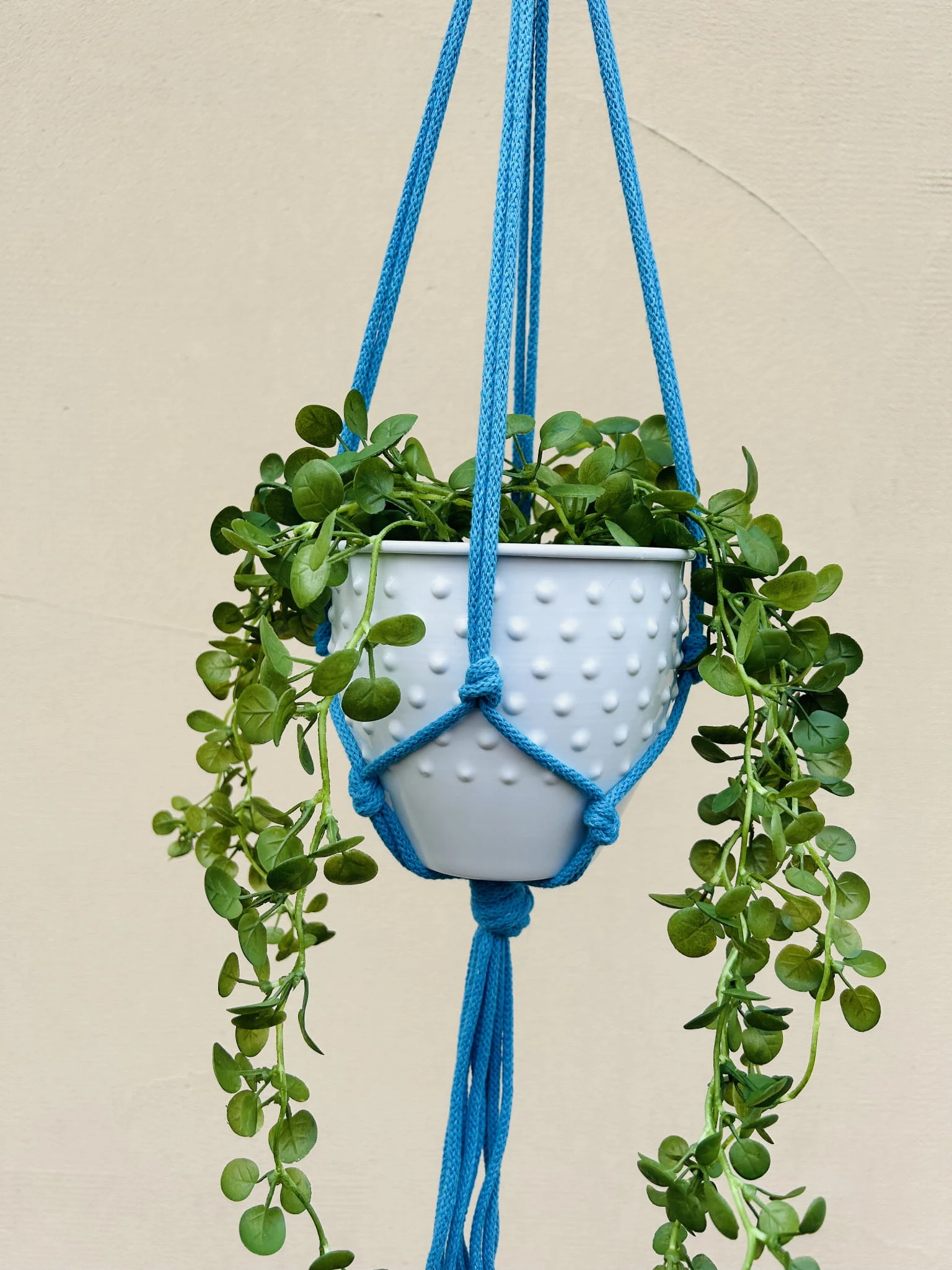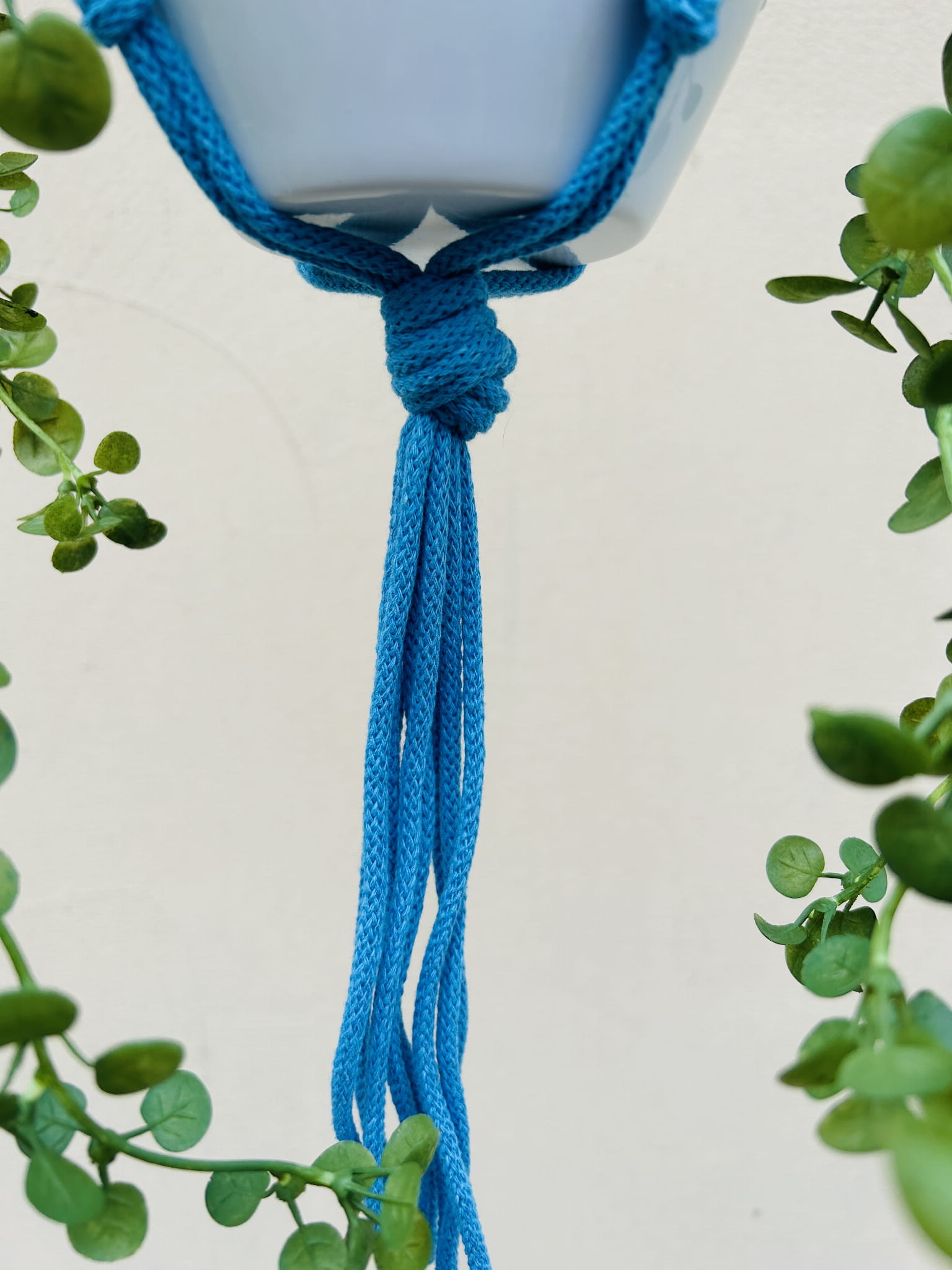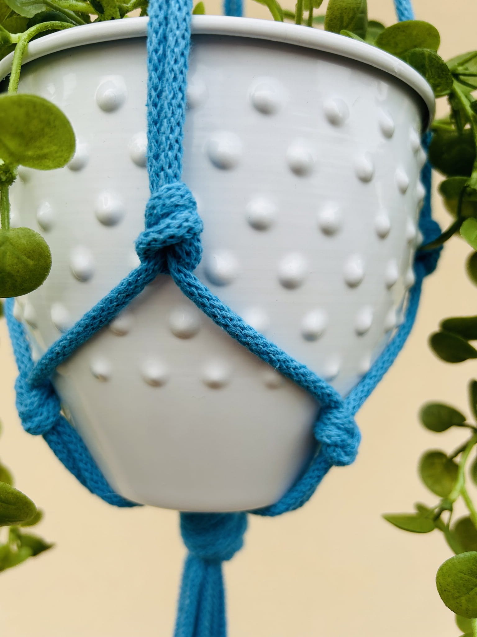 Kwietnik wiszący makrama ze sznurka NIEBIESKI