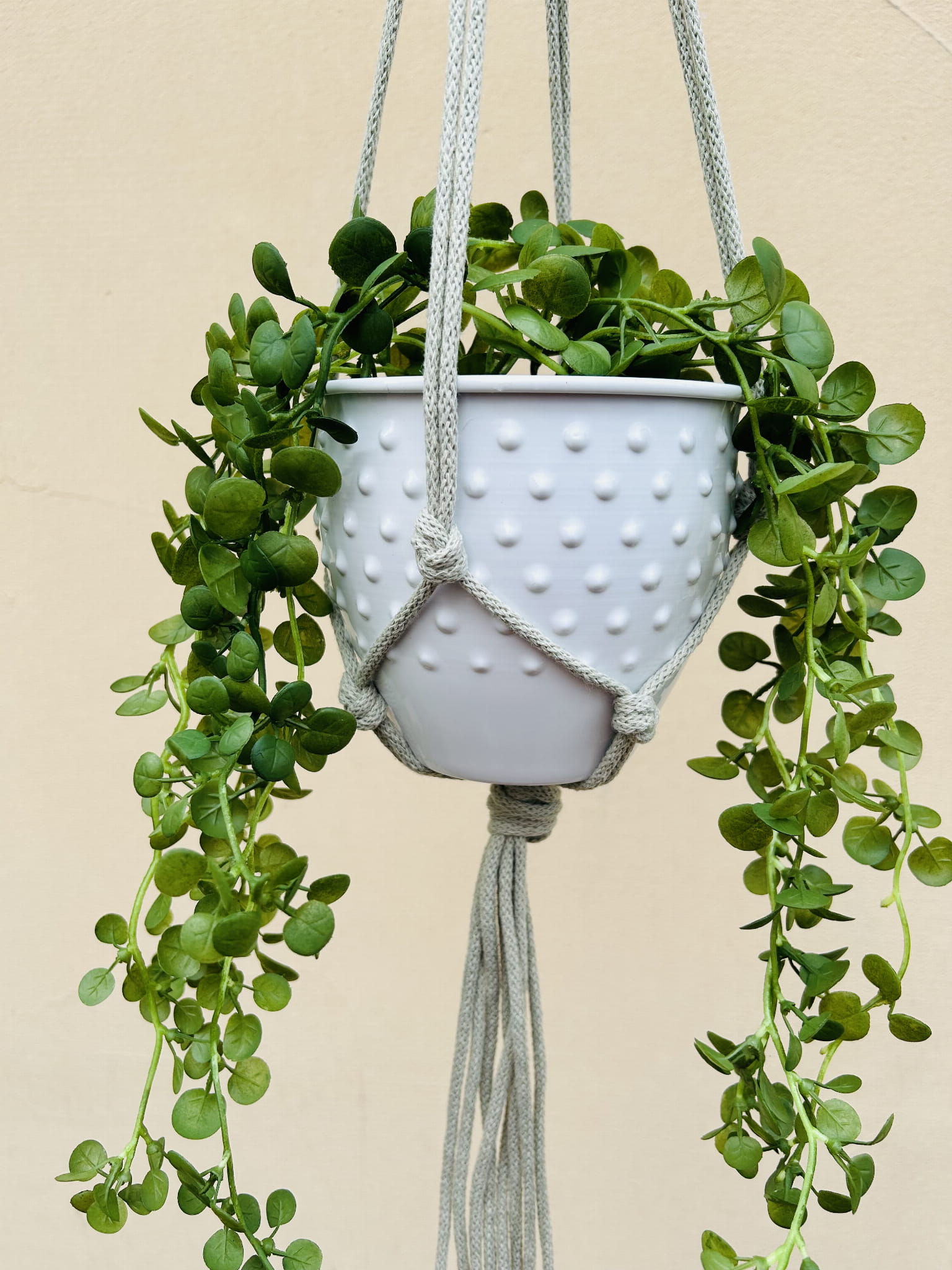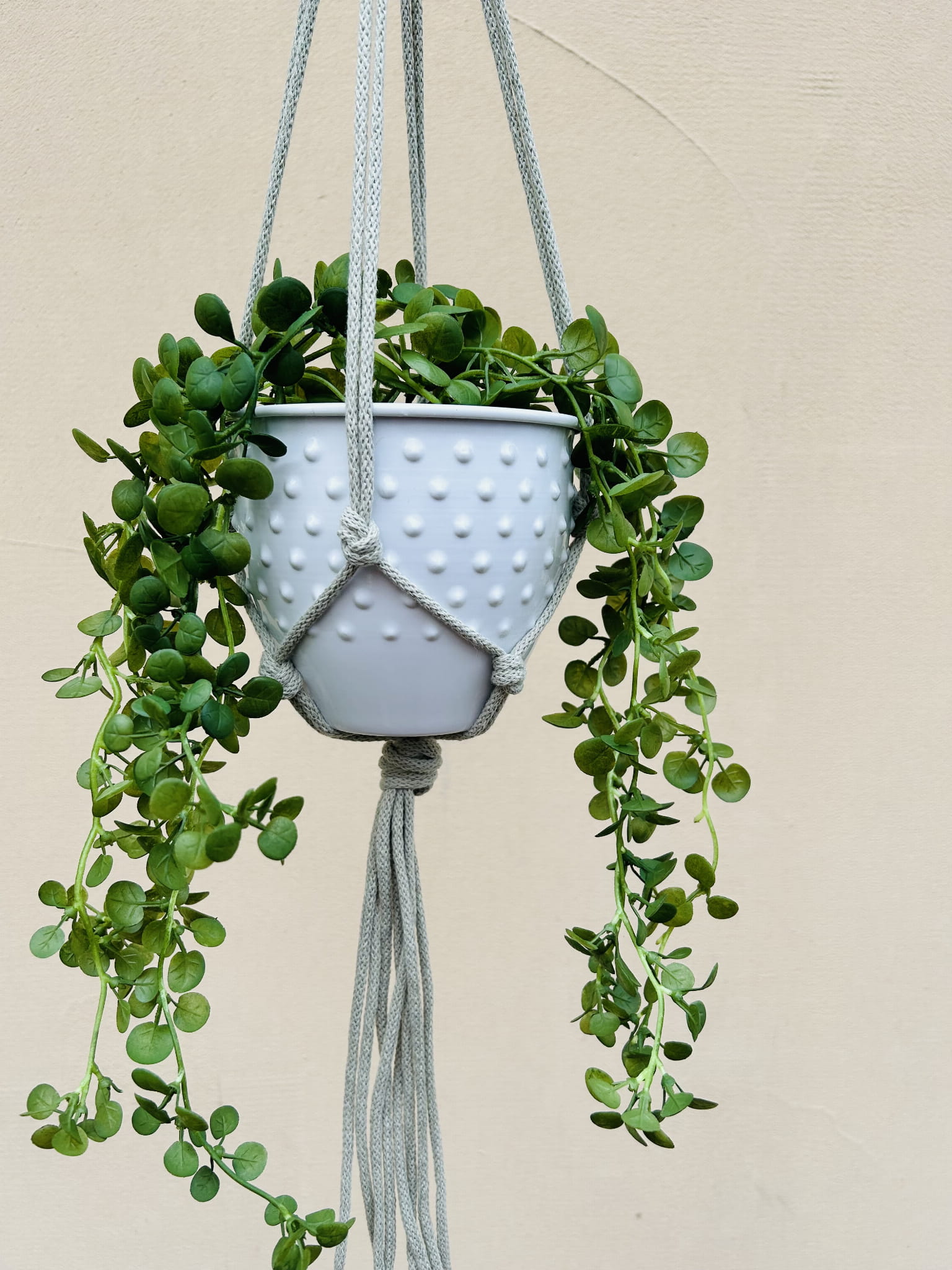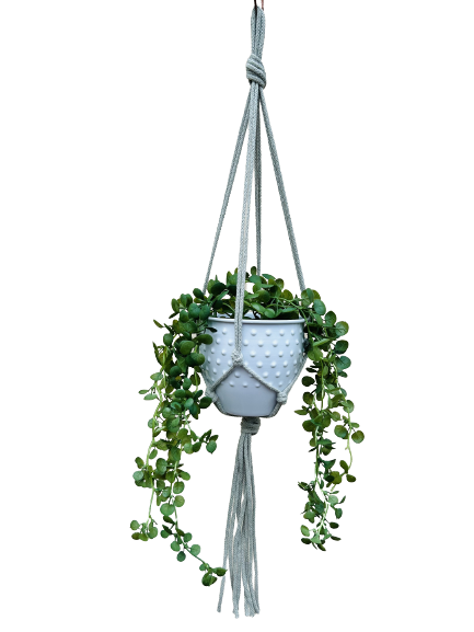 - Kwietnik można zawiesić na haczyku pod sufitem, na ozdobnym haku przy ścianie lub przewiesić przez drewniany kijek tworząc kompozycję z kilku kwietników.
