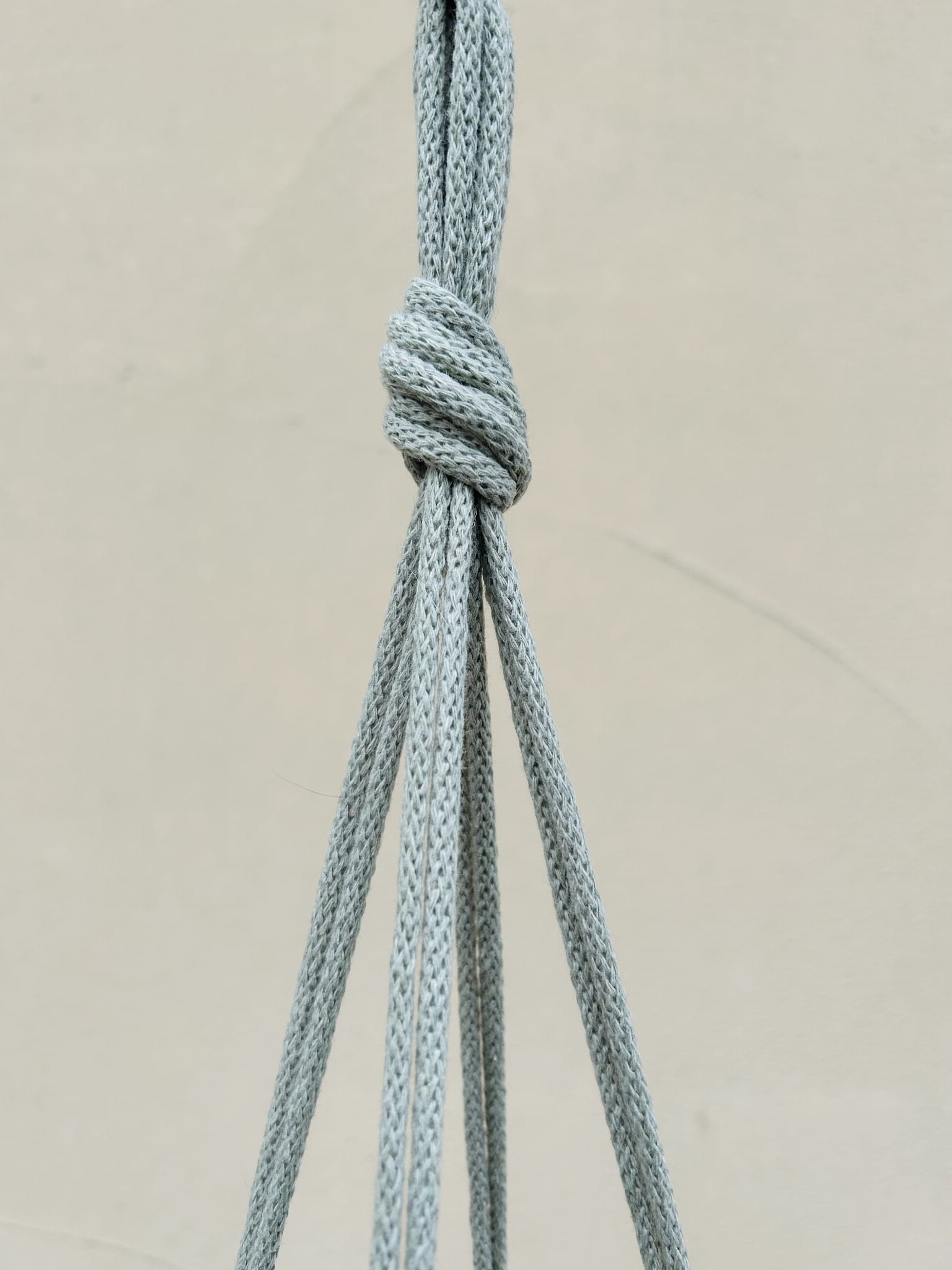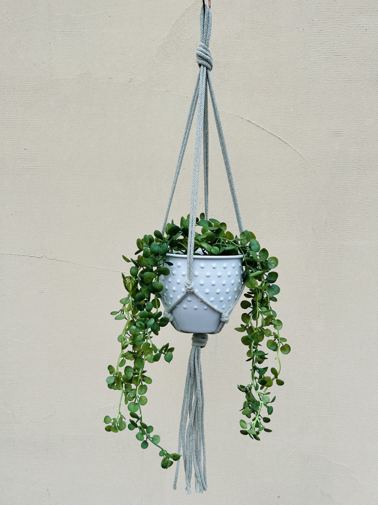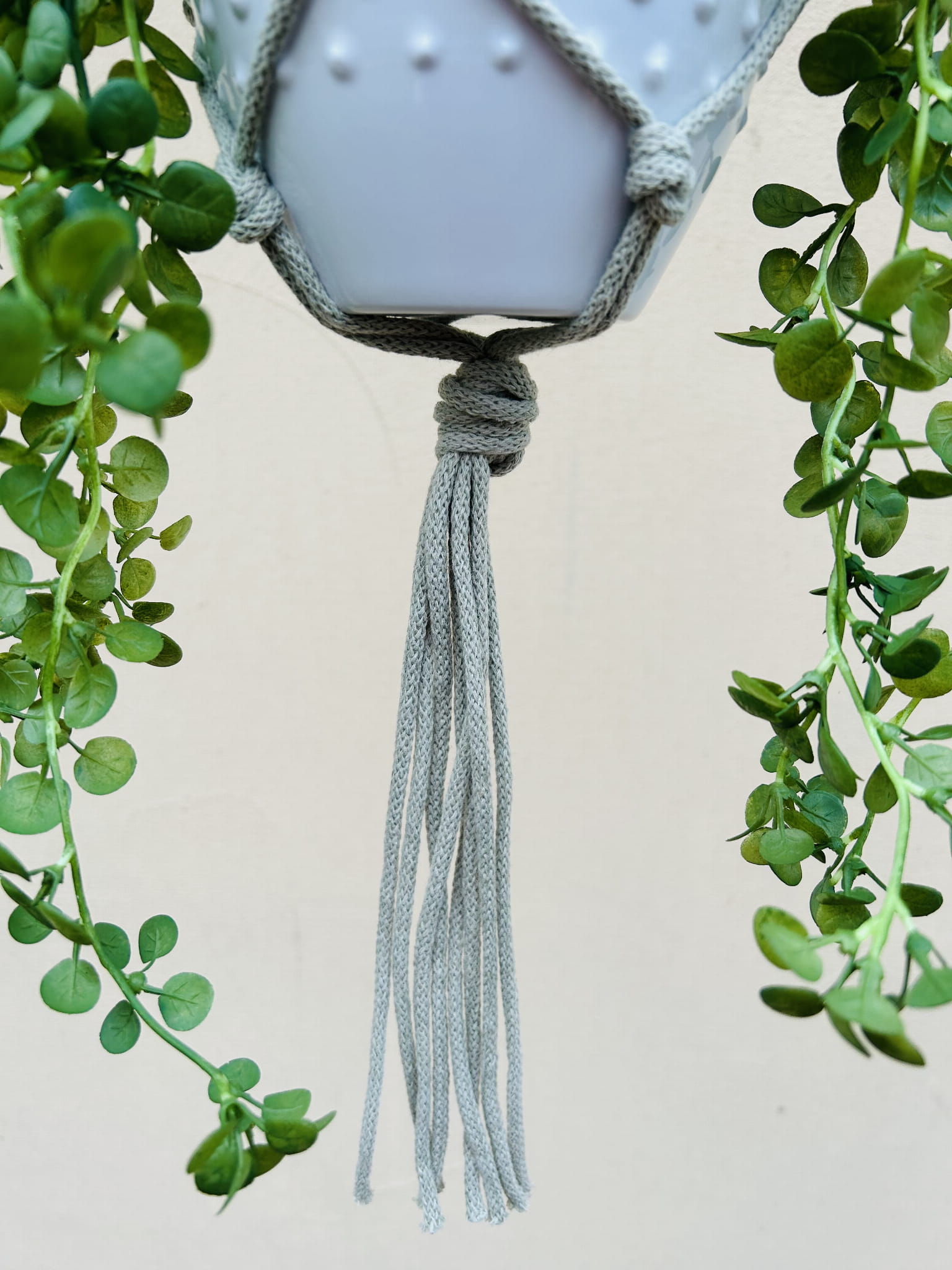 Kwietnik wiszący makrama. Wykonany ręcznie ze sznurka bawełnianego 5mm w kolorze oliwkowym.