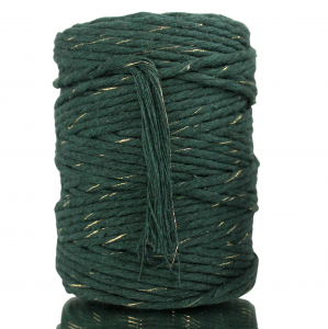 Sznurek bawełniany 3mm 100m ZIELONY + ZŁOTA NITKA