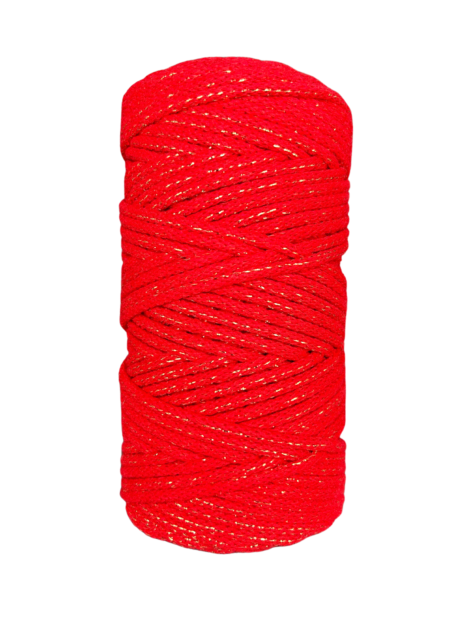 Sznurek bawełniany pleciony 5mm 100m CZERWONY + ZŁOTA NITKA