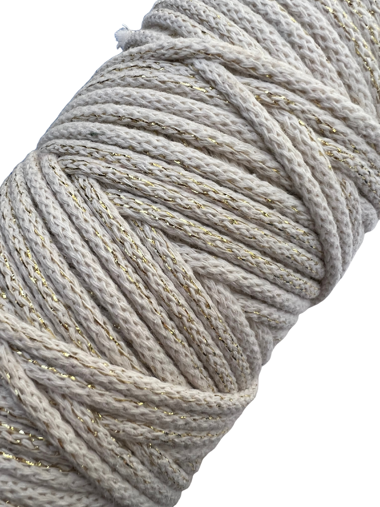 Sznurek bawełniany pleciony 5mm 100m ECRU + ZŁOTA NITKA