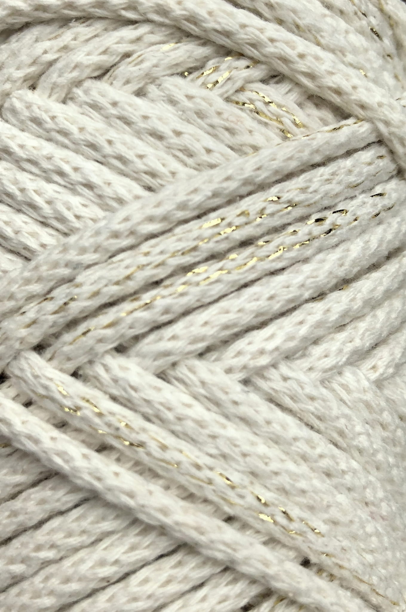 Sznurek bawełniany pleciony 5mm 50m ECRU + ZŁOTA NITKA